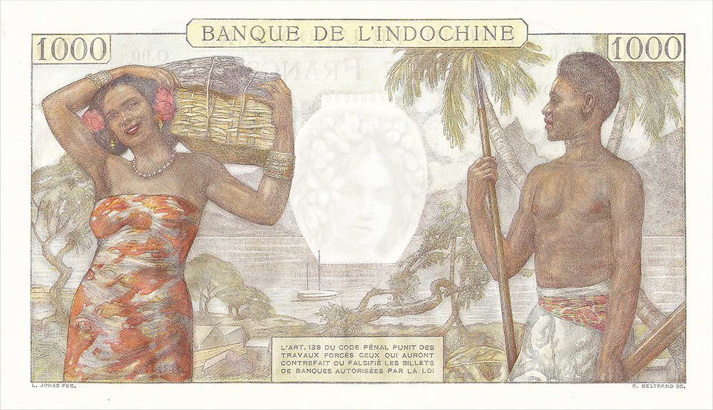 Mille francs, jeune Tahitienne type 1968 mod 1971 avec indication géographique – archive IEOM