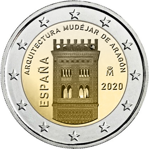 2 € commémorative 2020 Espagne, l’architecture mudéjar d’Aragón, avec la tour d’El Salvador de Terual